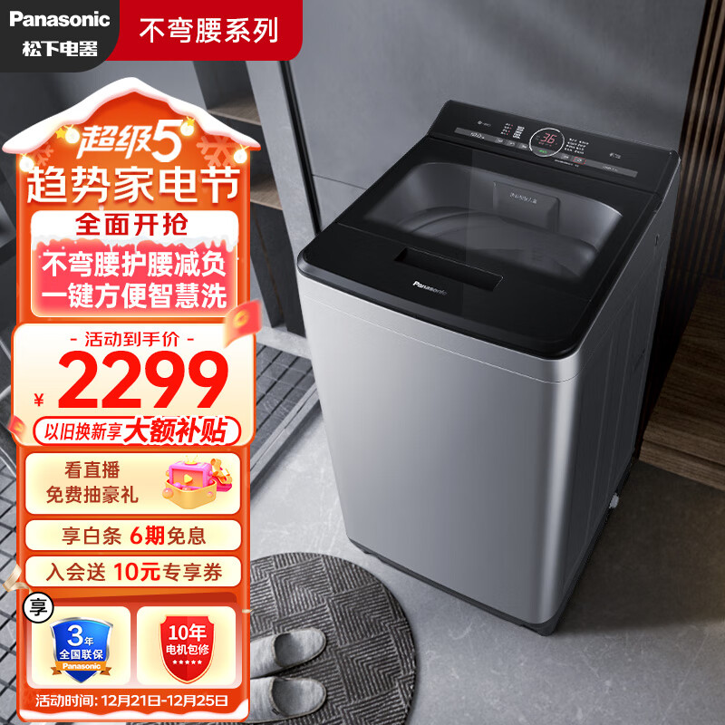 松下(Panasonic)波轮洗衣机全自动 不弯腰系列 桶自洁免清洗 一键操作 10公斤大容量 以旧换新 XQB100-USLKA价格:2299.00元!