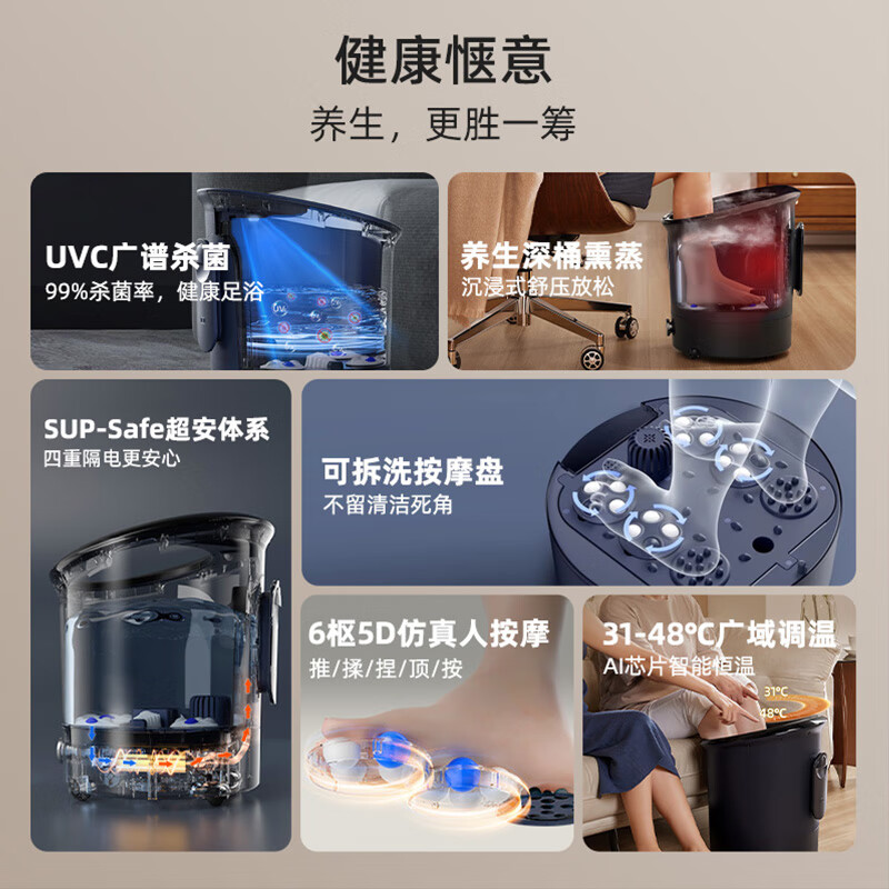 苏泊尔(SUPOR)泡脚桶UV杀菌全自动按摩足浴盆泡脚盆电动加热深桶多模式足浴桶智能洗脚盆送父母长辈S040123-2(L)价格:559.00元!
