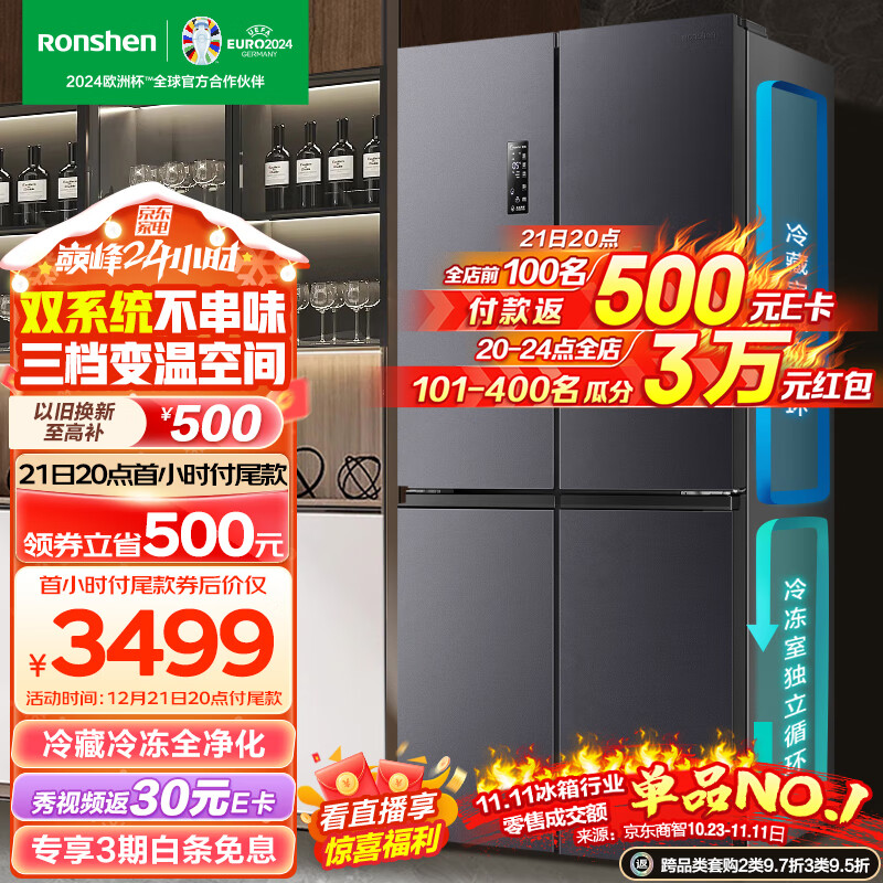 容声(Ronshen)【501升级款】离子净味Pro版 513升四开门十字对开冰箱家用变频一级能效BCD-513WD12FPA双循环价格:4499.00元!