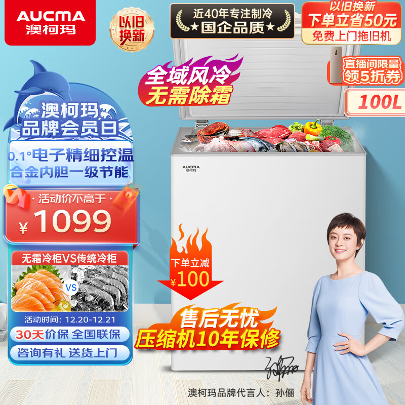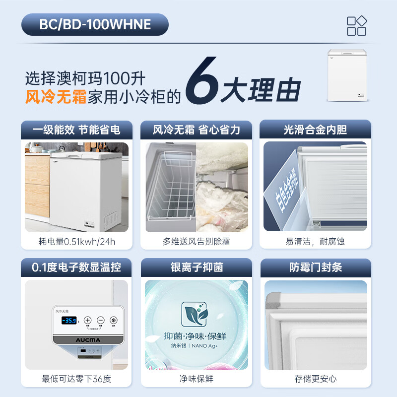 澳柯玛(AUCMA)100升风冷无霜冰柜家用商用单温冷藏柜冷冻柜母乳小冰柜商用小型冷柜冰箱BC/BD-100WHNE以旧换新价格:1199.00元!