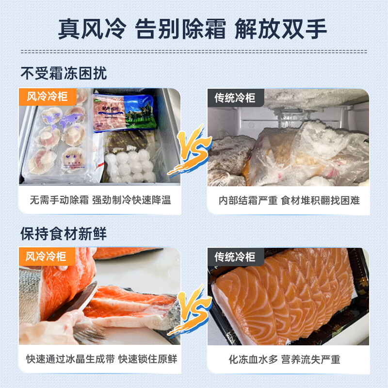 1、空间非常大,风冷的真的不结冰,压缩机质保10年,而且非常静音!商用建议买这种风冷的不用担心会结冰