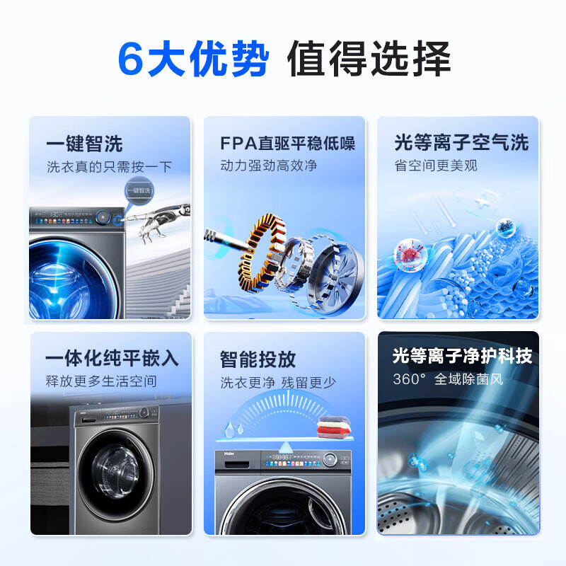海尔(Haier)滚筒洗衣机全自动 10公斤洗烘一体机 光等离子净护 纯平嵌入 直驱变频 智能投放EG100HMATE81SU1价格:4099.00元!