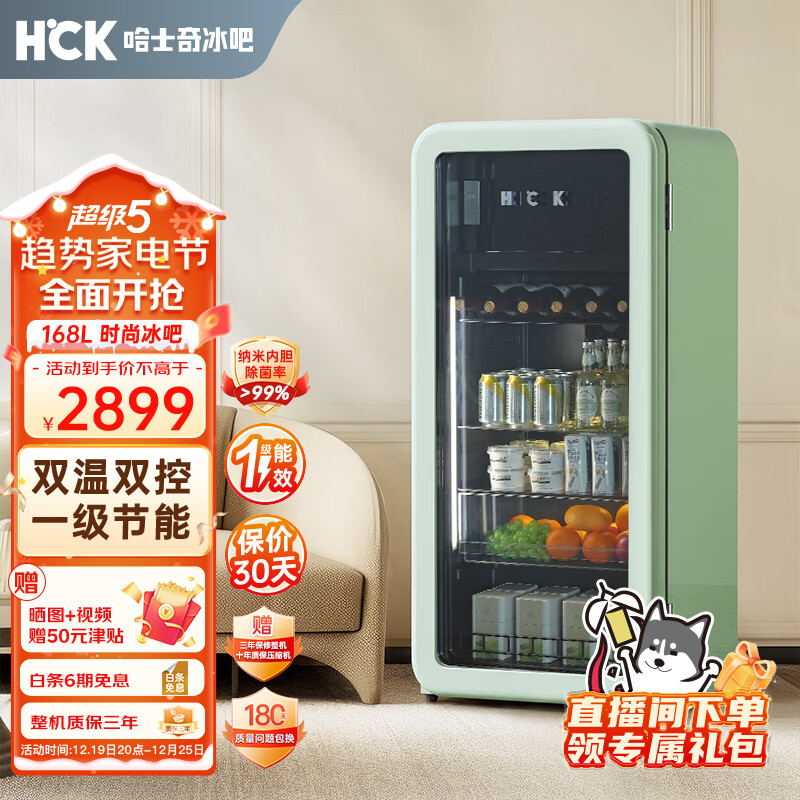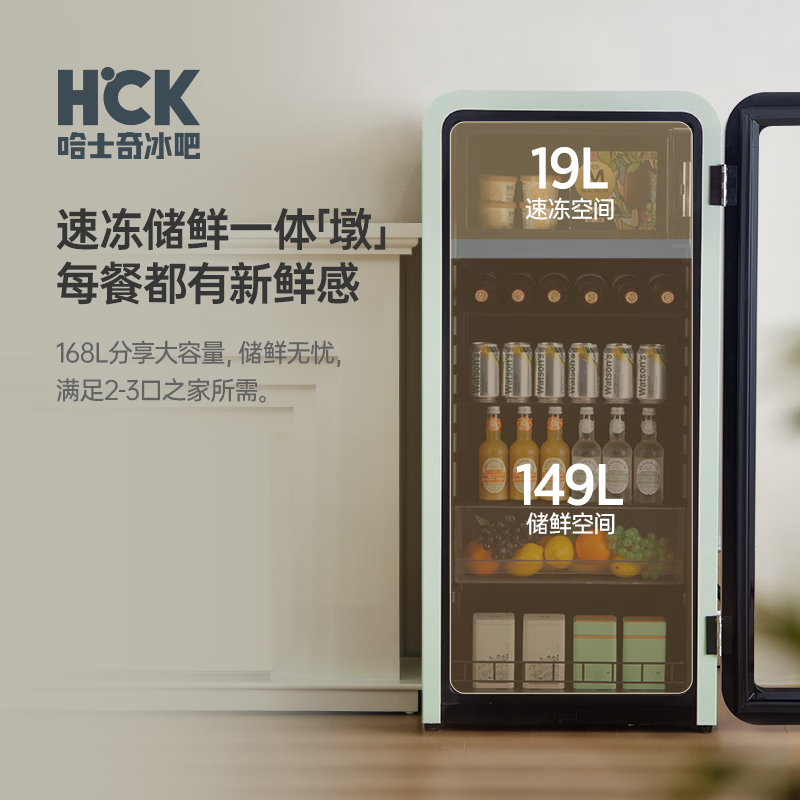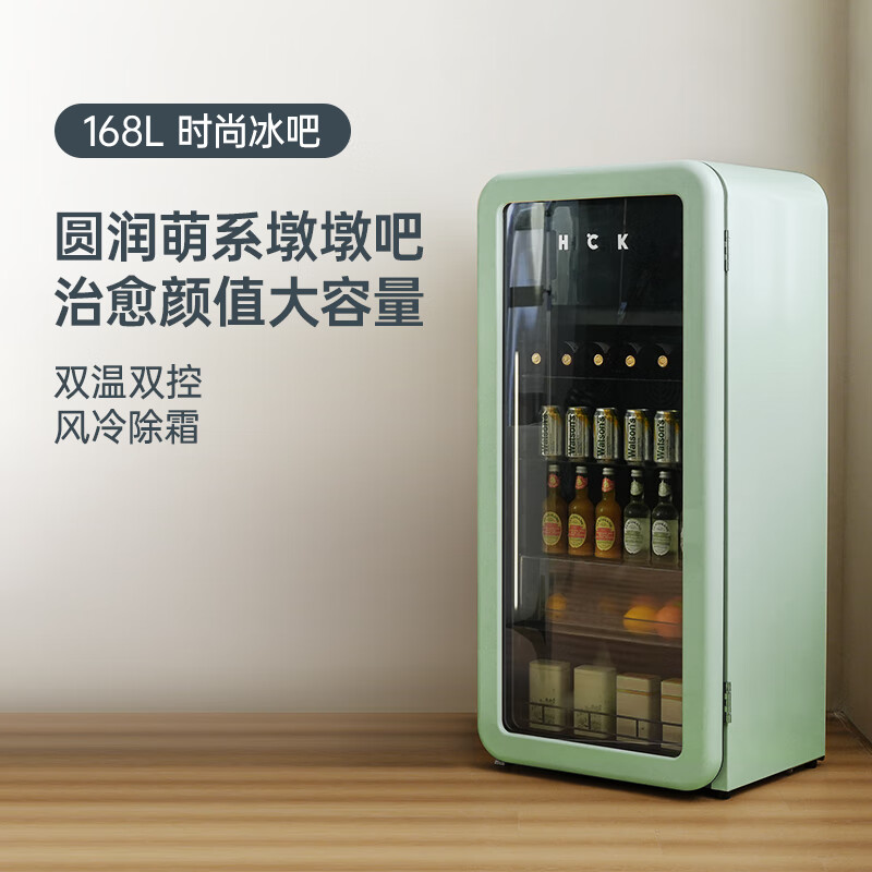 哈士奇客厅冰箱家用复古冷藏冷冻保鲜柜冰吧恒温立式酒饮节能展示柜墩墩吧168升SC-168RD-S 薄荷绿价格:2899.00元!