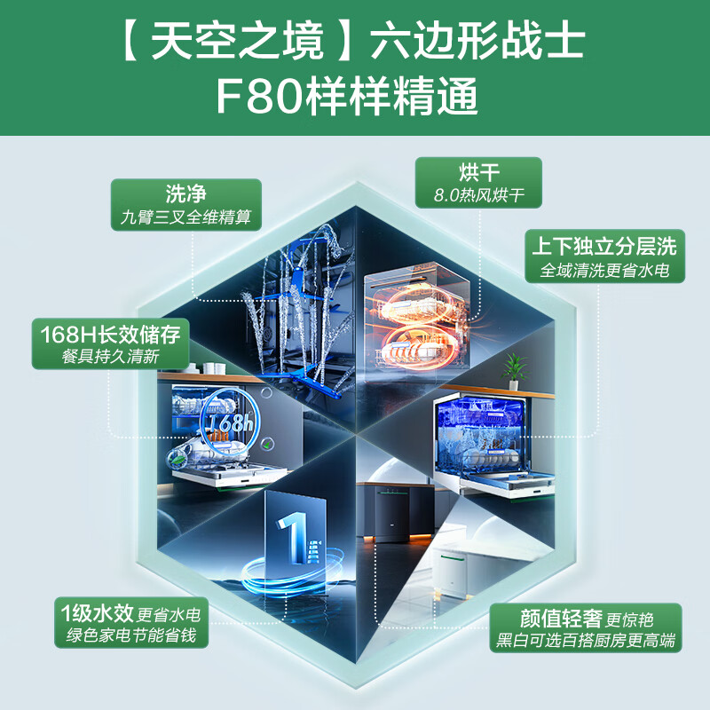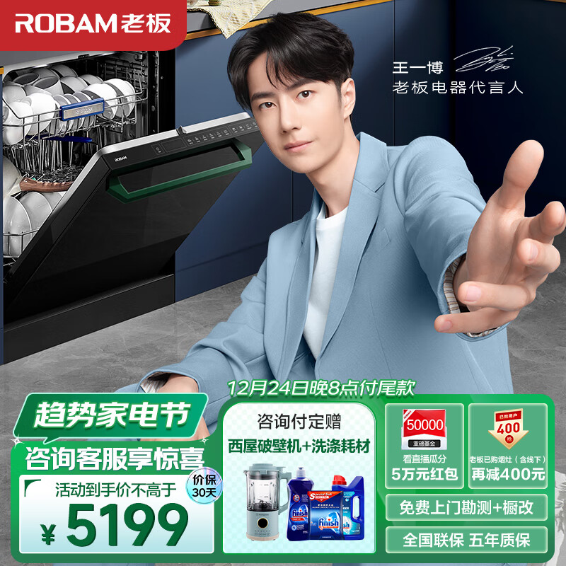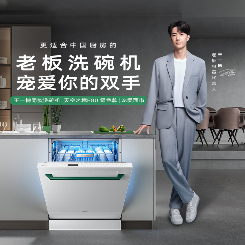 老板(Robam)F80D黑-绿色款【王一博同款】15套嵌入式去重油污家用洗碗机热风烘干消杀168h长效存一体机独立式价格:5199.00元!
