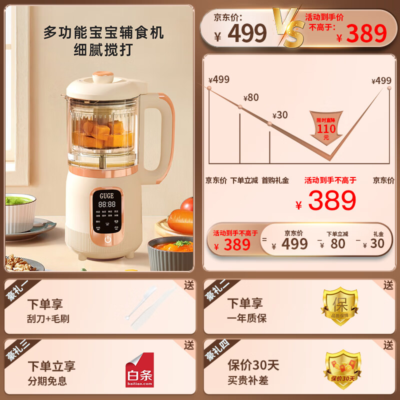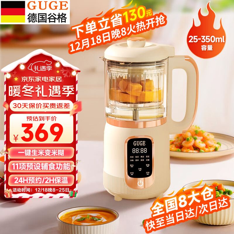 谷格(GUGE) 【隔水蒸煮·搅拌一体】婴儿辅食机 蒸煮搅拌一体机 自动多功能研磨米糊 宝宝打泥工具 辅食料理机 【一键触达营养宝宝辅食】25-350ML 米白色价格:499.00元!