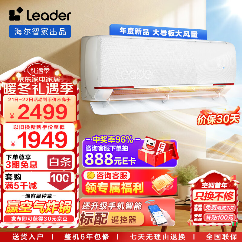 Leader海尔智家出品 1.5匹挂机新一级变频 自清洁壁挂式空调KFR-35GW/03LKC81TU1 以旧换新价格:2499.00元!