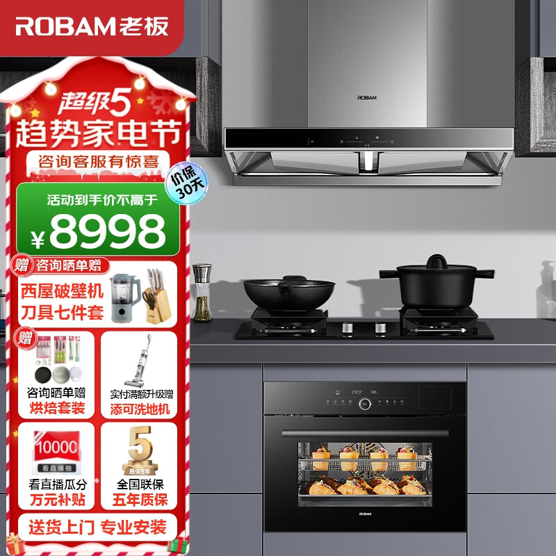 老板(Robam)60D1S+57B2DT+CQ9062D烟灶蒸烤套装厨房多件套22m3/min抽油烟机家用蒸箱烤箱嵌入式 (天然气)价格:8998.00元!