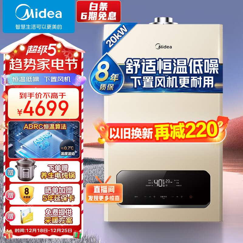 美的(Midea)双变频省气 一级低噪 舒适恒温燃气壁挂炉 天然气供暖 采暖地暖 家用锅炉省气 下置风机L1GB20-R05价格:4799.00元!