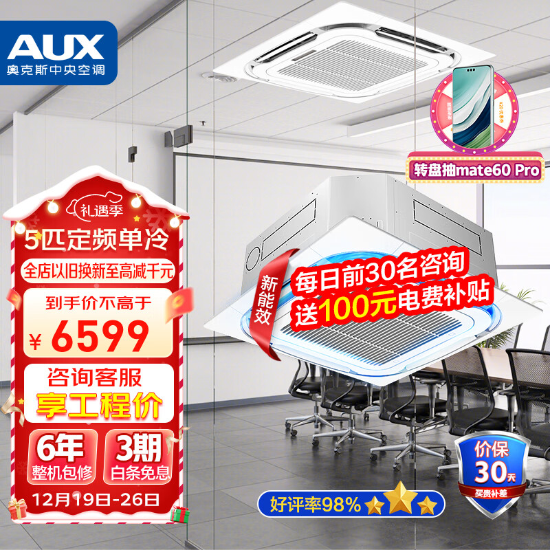 奥克斯(AUX)中央空调一拖一 5匹天花机嵌入式吸顶机单冷新能效吊顶商用天井机380V KF-120QW/R3YC3(B3)厂发价格:6599.00元!