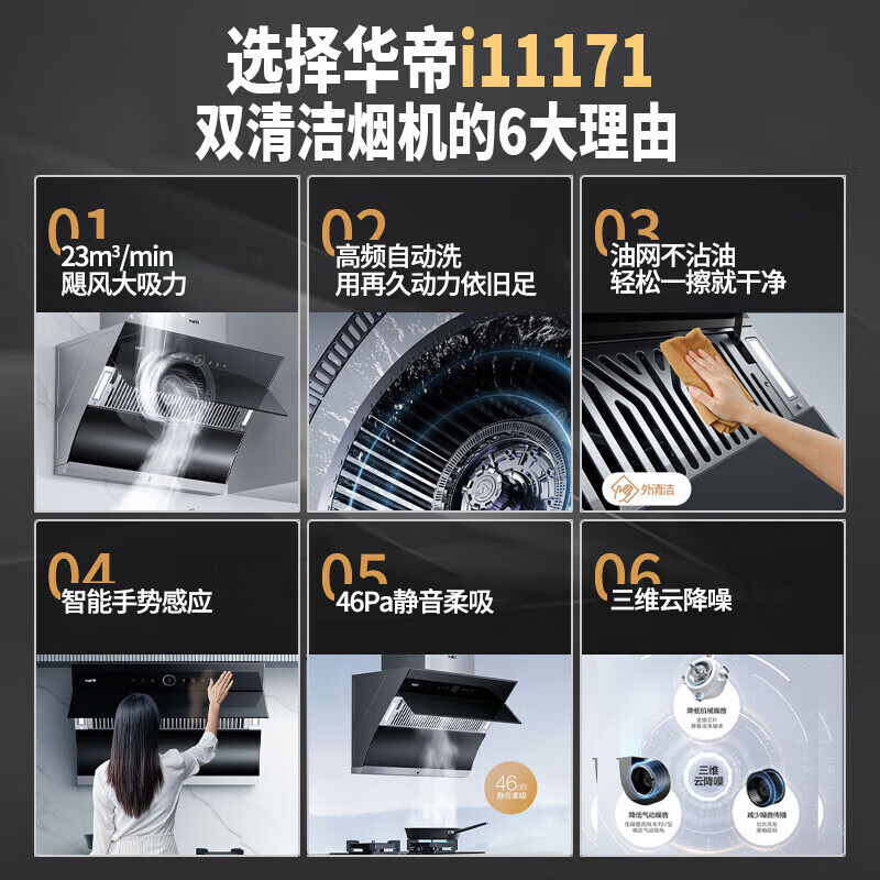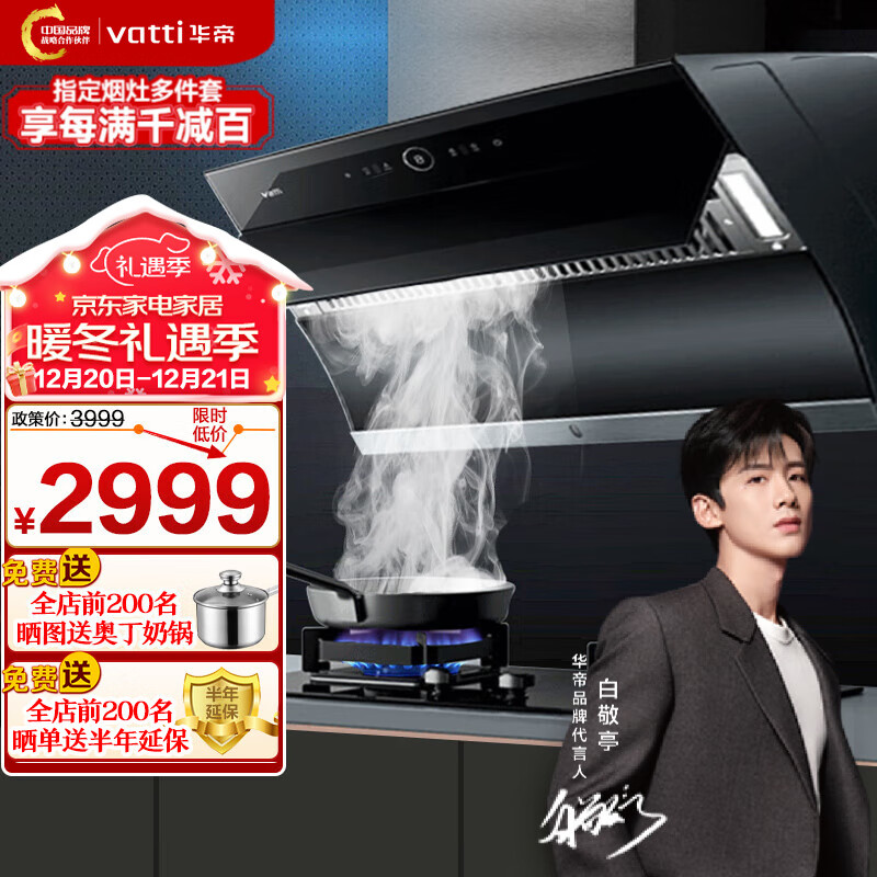 华帝(VATTI)油烟机灶具套装侧吸式家用小尺寸23立方大吸力智能挥手自动清洗吸抽排油烟机华帝官方 i11171 性价比套装(171烟机+5.0kW可调节灶73B)价格:3499.00元!