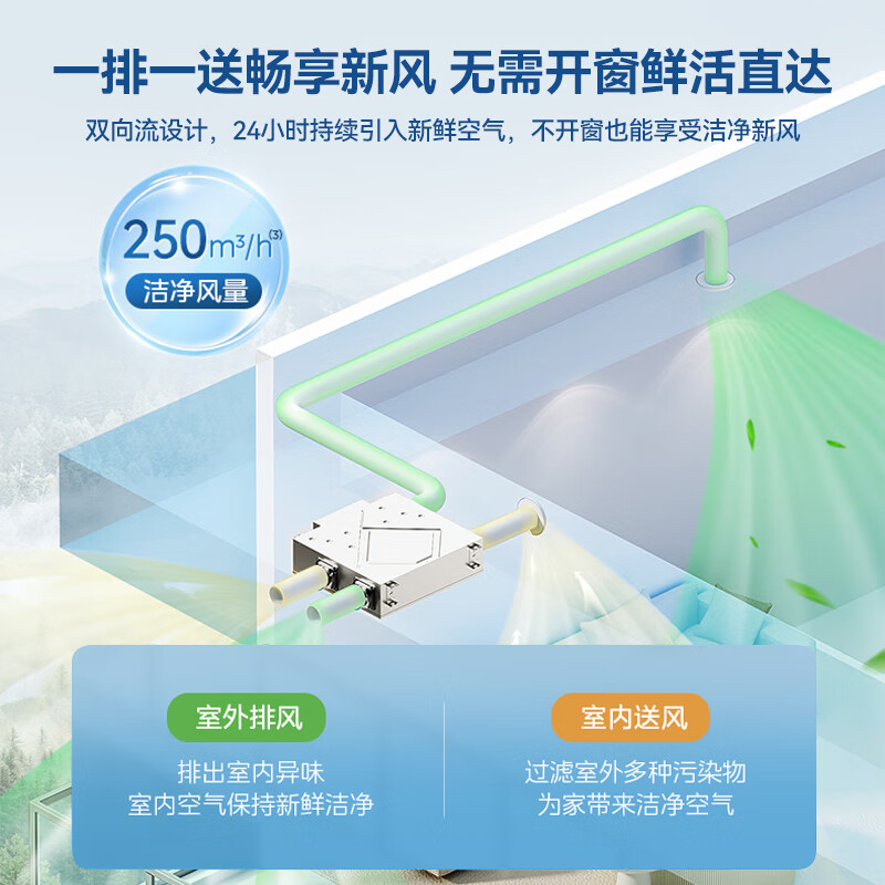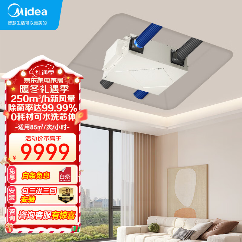 美的(Midea)中央空调新风机250m3/h大风量高效除霾净化 正负离子除菌 智能控制鲜净风全热交换器MQXF250Ⅱ价格:9999.00元!