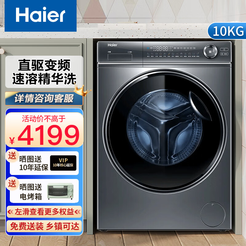 海尔洗衣机10公斤全自动滚筒光等离子护衣直驱变频一级能效WiFi互联家用大容量洗衣机价格:4199.00元!