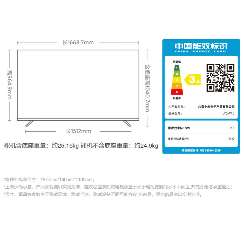 小米L75M9-S配置参数: