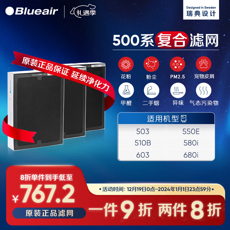 布鲁雅尔Blueair空气净化器过滤网滤芯 复合滤网适用503/510B/550E/580i【配件】价格:959.00元!
