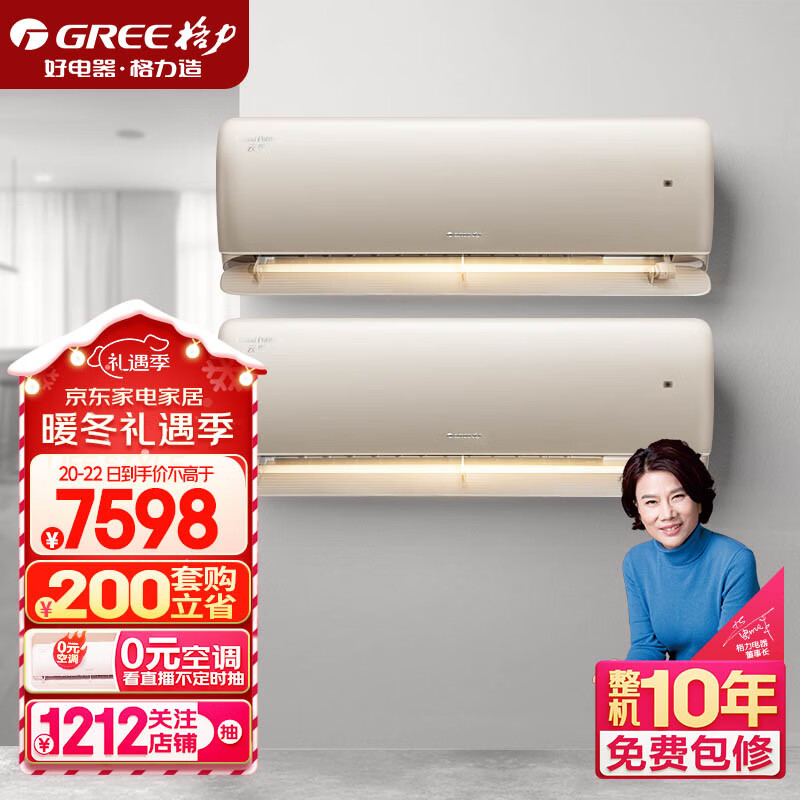 格力(GREE)新一级能效 自清洁 智能空调组合套装(1匹云佩挂机+1.5匹云佩挂机)价格:7798.00元!