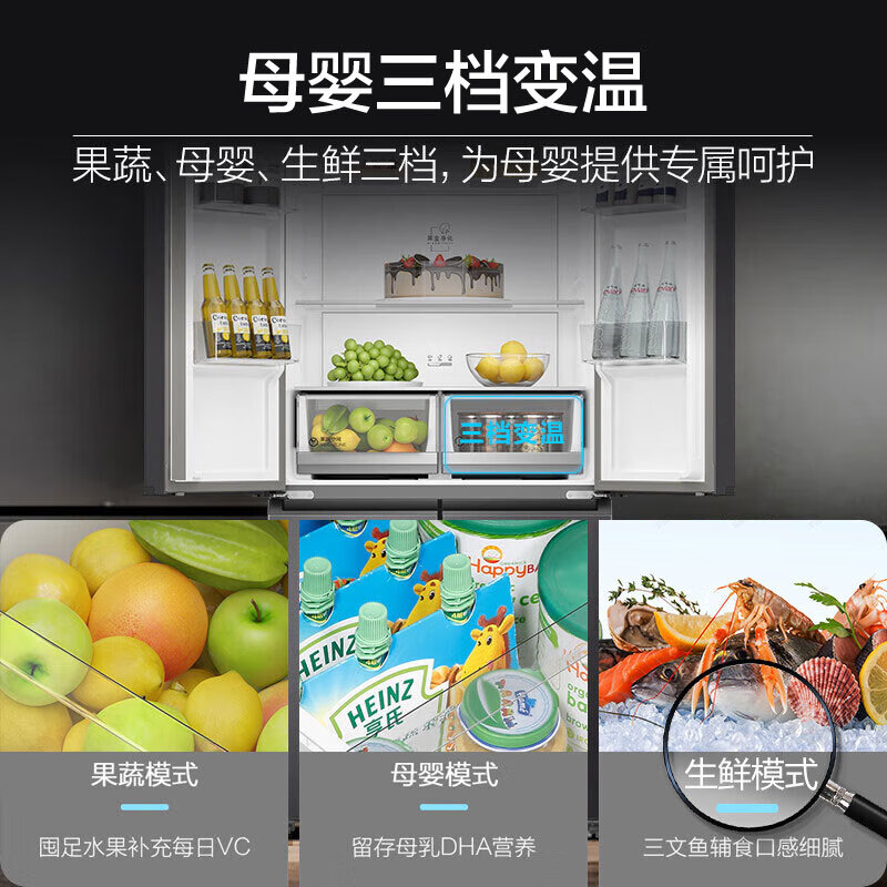 1、非常满意这款冰箱,冷藏效果比较好,下面冷冻拿东西更方便,喜欢四开门的冰箱,京东商城网购比较放心,值得推荐!
