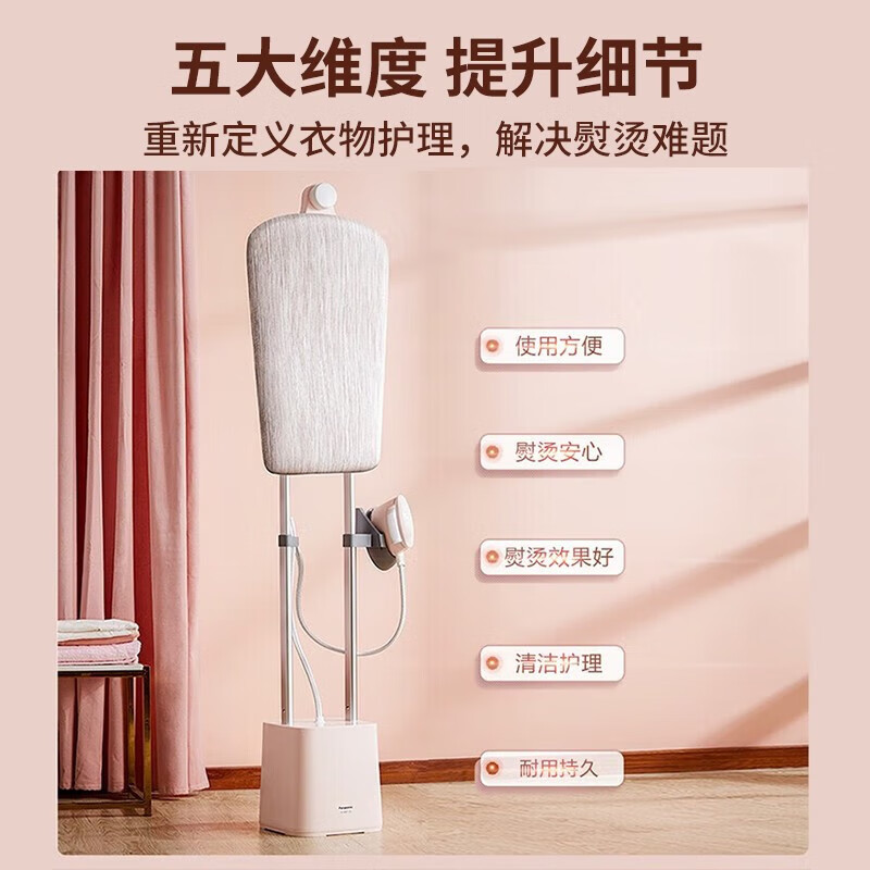 3、首先是相信松下电器的品牌,经过精心挑选,选定了这一款挂烫机。货品收到,包装完好,产品精致,材质优良,漂亮又不失帅气,非常喜欢!与之前使用的产品比起来,效果大大升级!出汽速度:很顺畅,档位调节也很方便。颜值外观:颜值在线,不占位置,挺好收纳的。产品组装方便,是一次非常满意的购物。