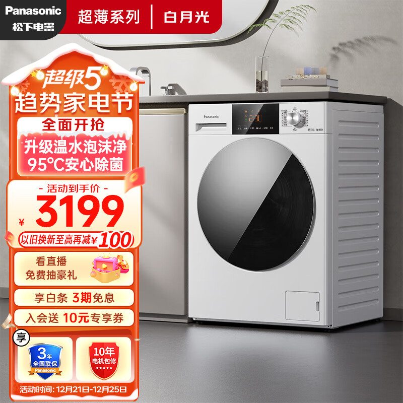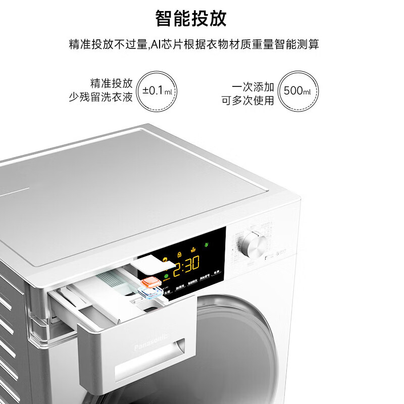 松下(Panasonic)滚筒洗衣机全自动 拾光系列 10公斤超薄白月光 温水泡沫净 深度洁衣 除菌除螨智能投放XQG100-810F价格:3499.00元!