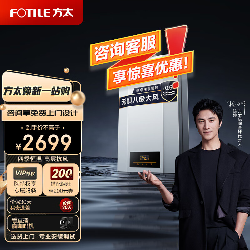 方太天然气16升燃气热水器 家用强排式 四季恒温模式 高层抗风Max系列 多点用水不干扰JSQ30-P16D1价格:2699.00元!