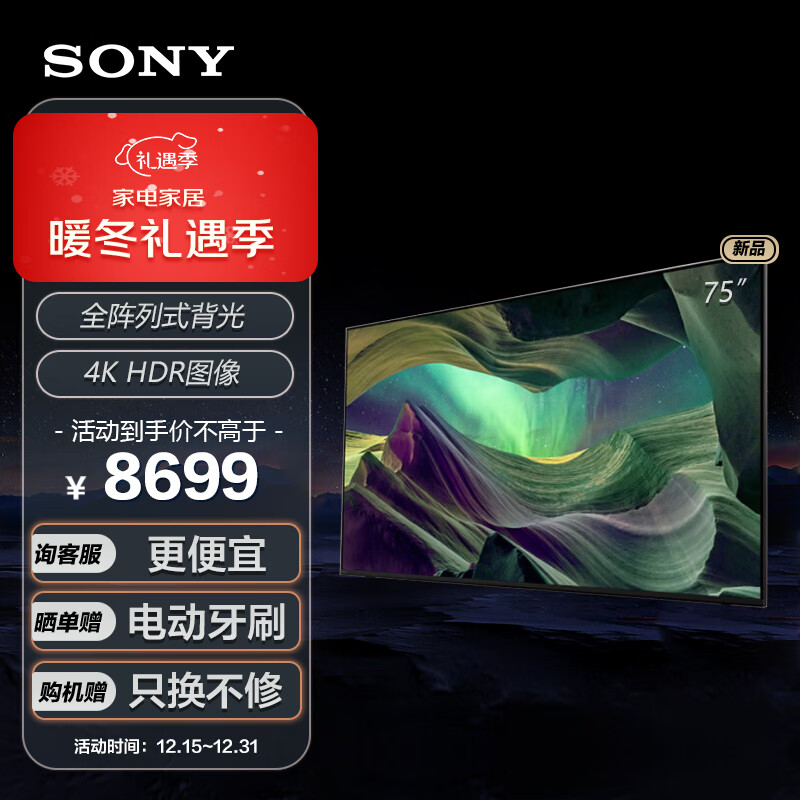 索尼(SONY)KD-75X85L 75英寸 全阵列式背光 4K 120Hz 屏设计价格:8699.00元!