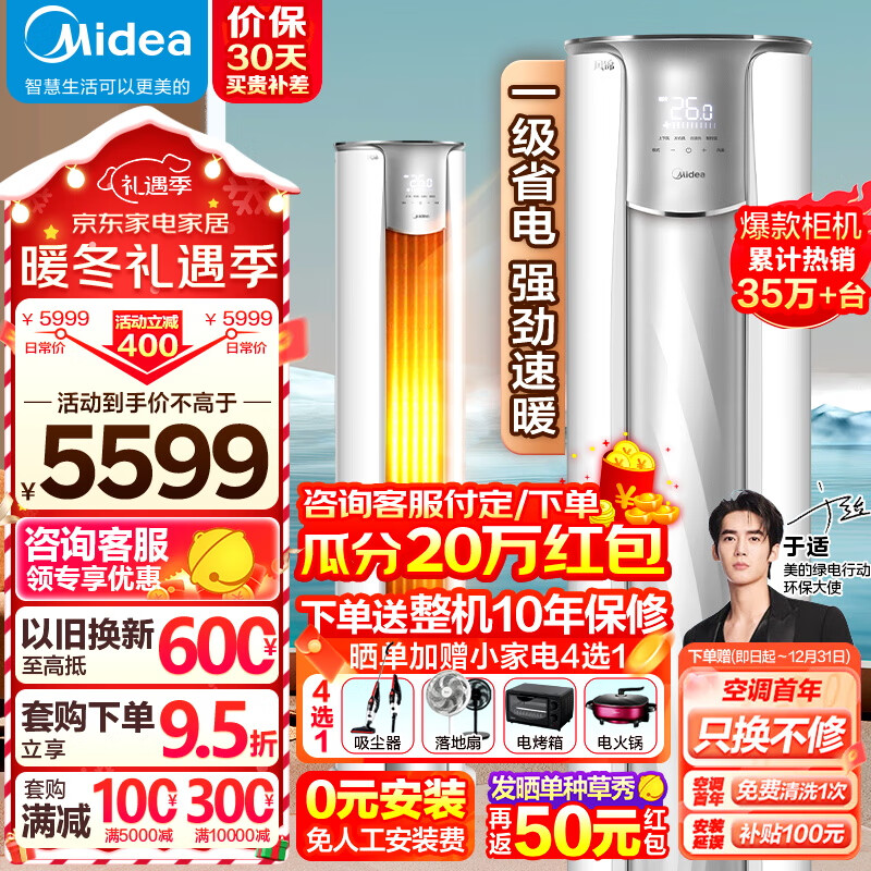 美的(Midea) 2匹 风锦 新一级能效变频冷暖 大风口自清洁 智能家电 家用客厅立式空调柜机 KFR-51LW/N8ZHB1价格:5599.00元!