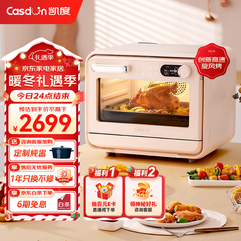 凯度(CASDON)台式 蒸烤箱一体机 蒸箱 烤箱 28L家用电烤箱 蒸烤箱 陶瓷膜内腔 APP智能操控 直喷蒸汽 Sky Air价格:2699.00元!
