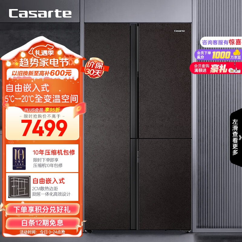 卡萨帝(Casarte)500升原石系列大容量对开双开门多门自由嵌入式家用超薄大容量电冰箱变频BCD-500WLCTS7MGYU1价格:7499.00元!