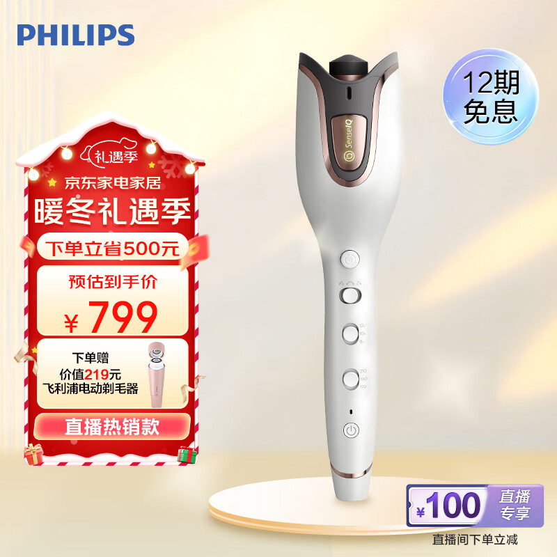 飞利浦(PHILIPS)全自动电卷发棒 升级款 SenseIQ技术 防烫造型 25mm? BHB878/15 陶瓷白价格:799.00元!