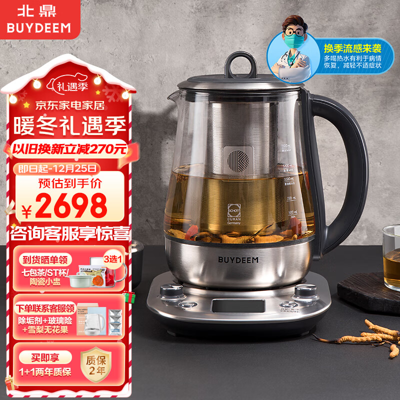 北鼎(Buydeem)养生壶中药壶多功能养生壶高端预约煮茶器商务全不锈钢进口玻璃智能养身燕窝壶K187价格:2698.00元!