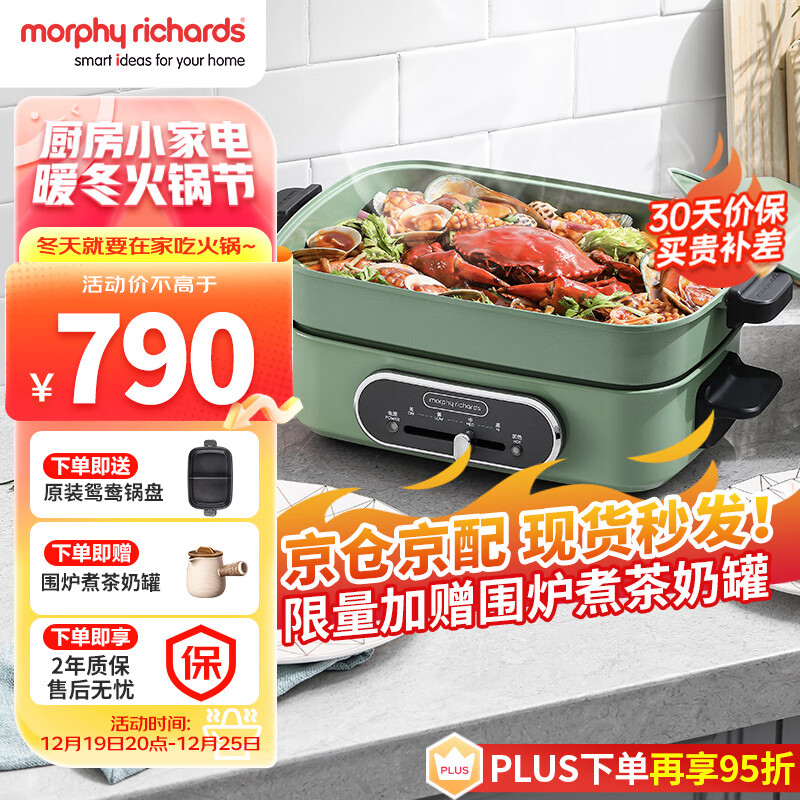 摩飞电器(Morphyrichards)多功能锅 家用多用途锅 电火锅电煮锅电蒸锅电热锅 2.5升 火锅锅 MR9088 薄荷绿价格:870.00元!