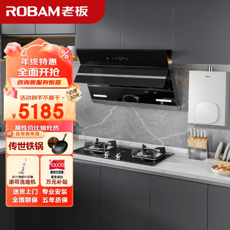老板(Robam)抽油烟机厨房多件套 家用挥手21风量免拆洗烟机燃气灶具14升燃气热水器27A3H+32B7DT+HT322A-14价格:5185.00元!