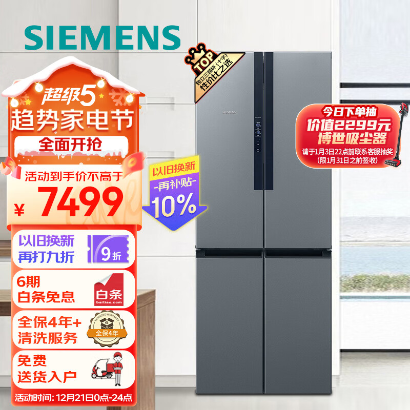 西门子(SIEMENS) 452升 混冷十字双开门四开门家用冰箱 大容量 零度保鲜 母乳分储 以旧换新KM45FA33TI价格:8299.00元!