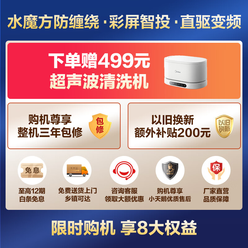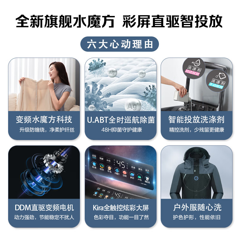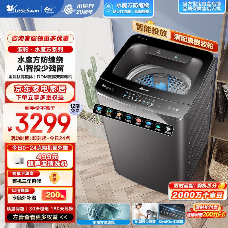 小天鹅(LittleSwan)波轮洗衣机全自动 水魔方系列 旗舰防缠绕 彩屏自投 直驱变频 10公斤以旧换新TB100MUIT价格:2979.00元!