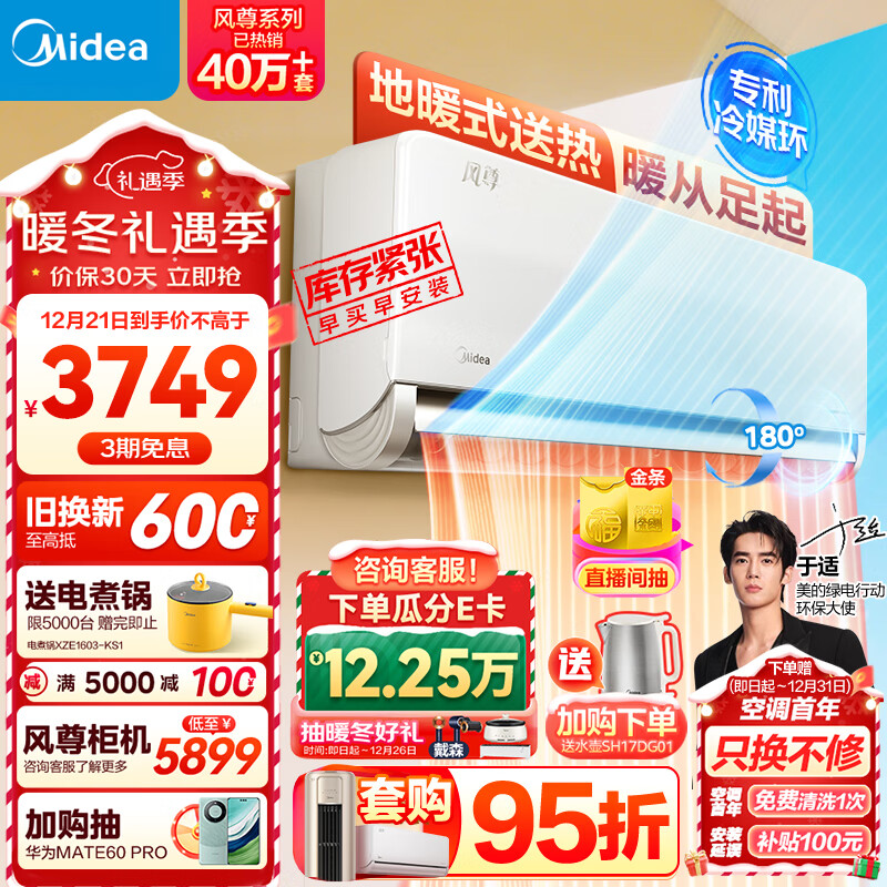 美的(Midea)空调 1.5匹 风尊 旗舰版 新一级能效 变频冷暖 壁挂式挂机 京东小家智能家电 KFR-35GW/N8MXC1A价格:3749.00元!