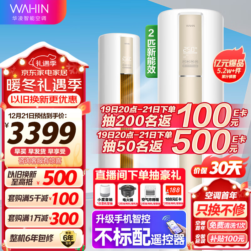 华凌空调 新能效 空调立式 急速冷暖 2匹 客厅卧室柜式空调柜机 以旧换新 京东小家 KFR-51LW/N8HA3价格:3399.00元!