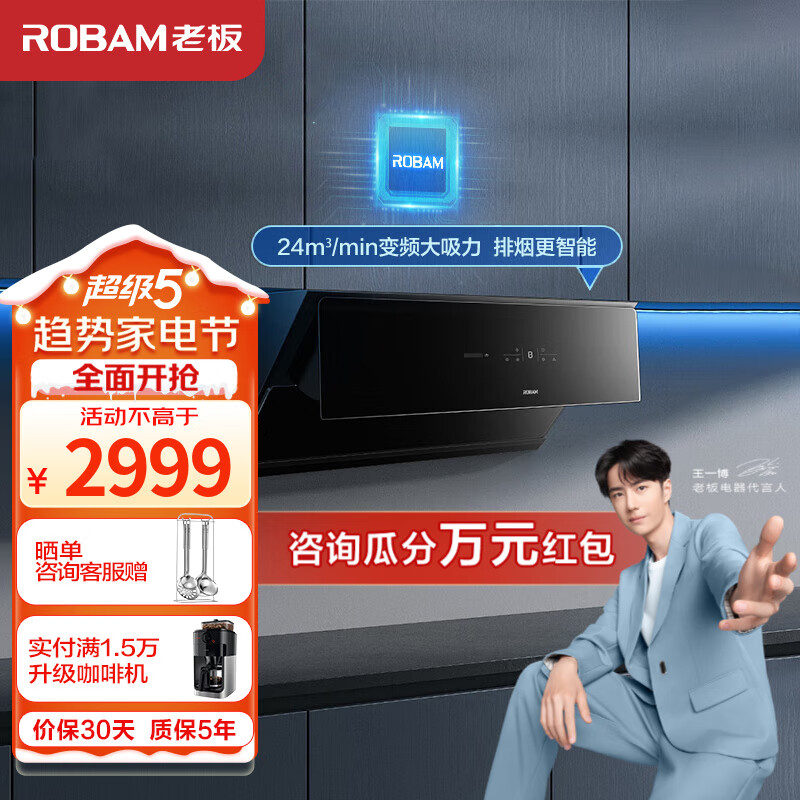 老板(Robam)油烟机28X6ST变频油烟机24风量抽油烟机【王一博同款】低噪音挥手感应智能语音控制抽油油烟机 变频单品油烟机 探索家系列价格:2999.00元!