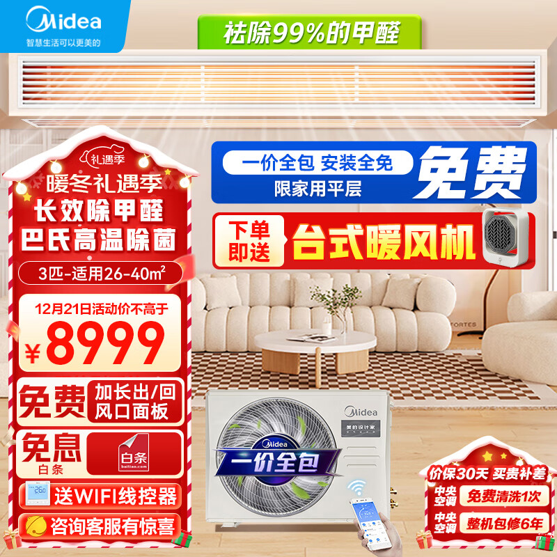 美的(Midea)中央空调风管机一拖一3匹全直流变频一级能效设计家KFR-72T2W/B3DN1-SJ(1)一价全包价格:9099.00元!
