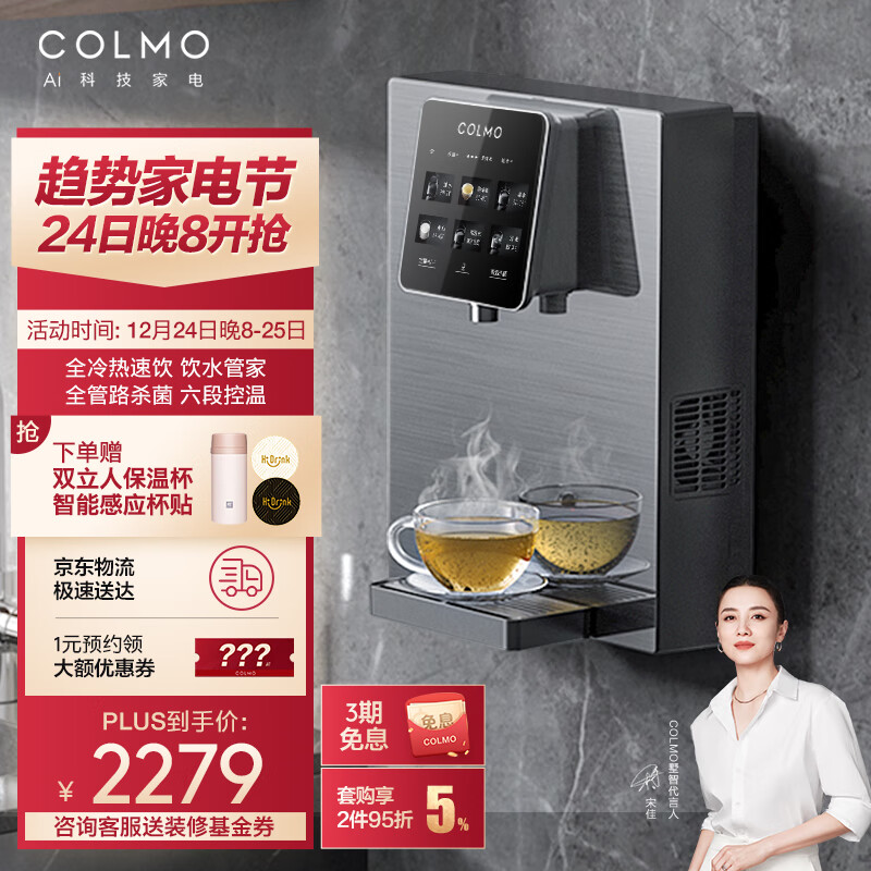 COLMO家用净水器伴侣管线机 全通量匹配 高温杀菌智能感应取水 加热直饮 壁挂式饮水机 CWG-RA08价格:2399.00元!