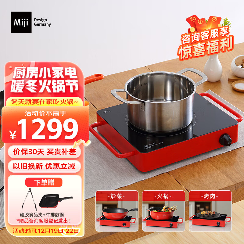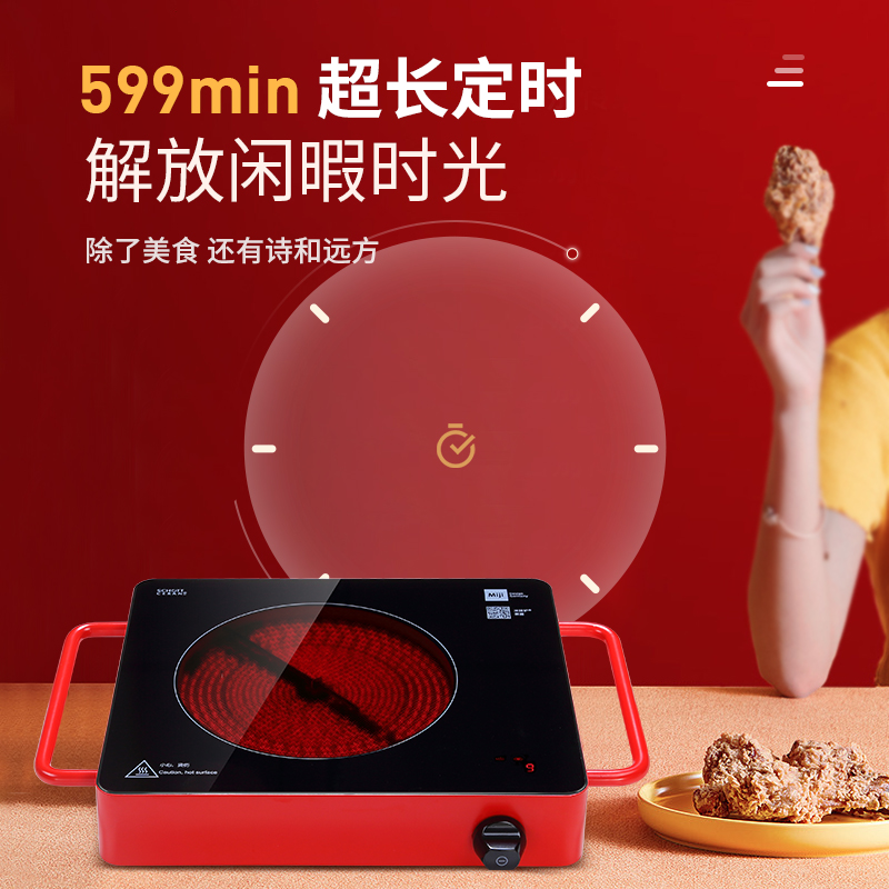 米技Miji电陶炉电磁炉德国米技炉家用煮茶炉超长定时双圈烹饪LED显示升级款D6红色 2000W价格:1459.00元!