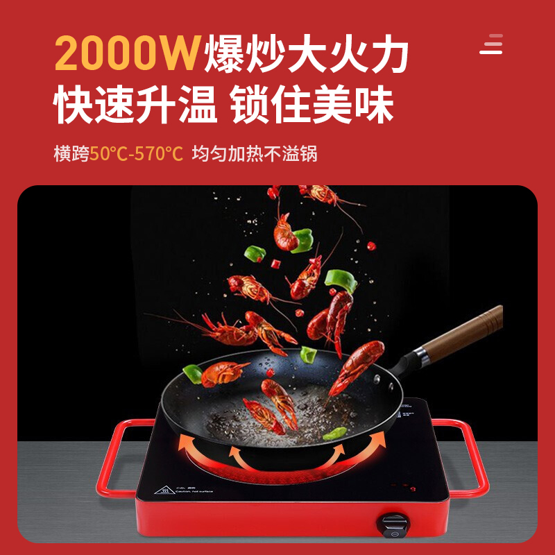 1、电磁炉收到了,非常喜欢,外观设计很高大上,红色的很好看。使用时一点儿声音也没有,有9个档,很方便,非常满意的一次购物。