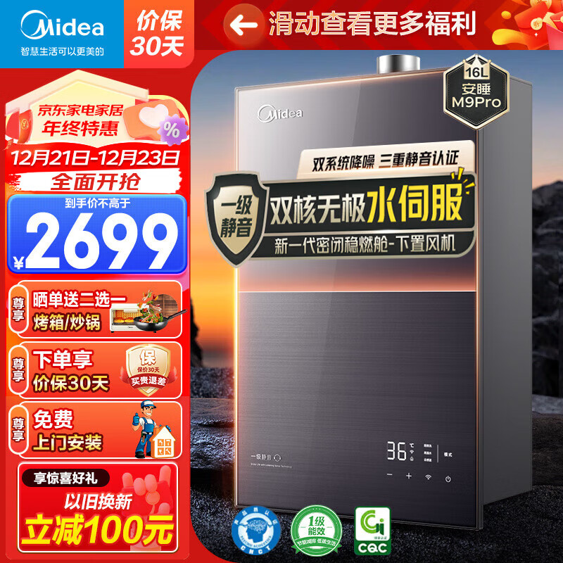 美的(Midea)燃气热水器16升天然气家用强排式一级静音双核无极恒温水伺服下置风机密闭稳燃舱安睡JSQ30-M9 Pro价格:2699.00元!