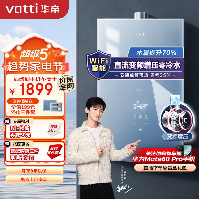 华帝(VATTI)16升燃气热水器天然气 家用即热式 玻璃屏零冷水 增压瀑布浴 智能wifi 以旧换新 i12070-16价格:1899.00元!