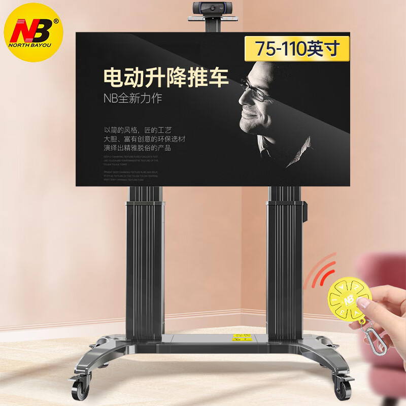 NB TW100(75-110英寸)遥控电动电视支架触摸一体机支架商用视频会议推车可移动升降电视落地挂架皓丽鸿合黑价格:4990.00元!