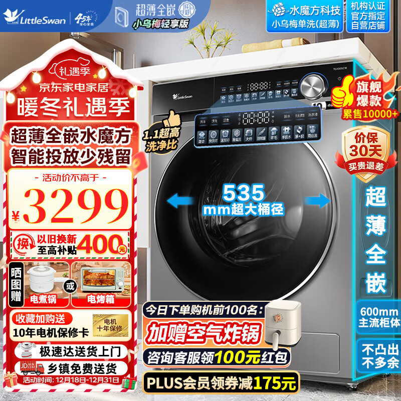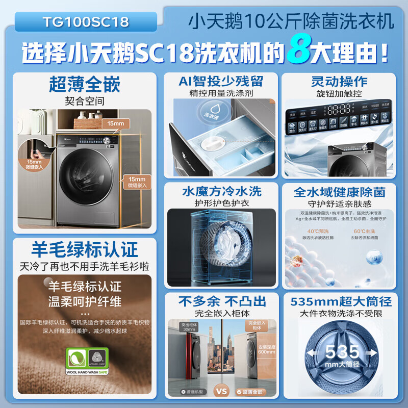 小天鹅(LittleSwan)洗衣机全自动家用10公斤滚筒水魔方小乌梅轻享版超薄全嵌智能投放大筒径10公斤SC18价格:3499.00元!