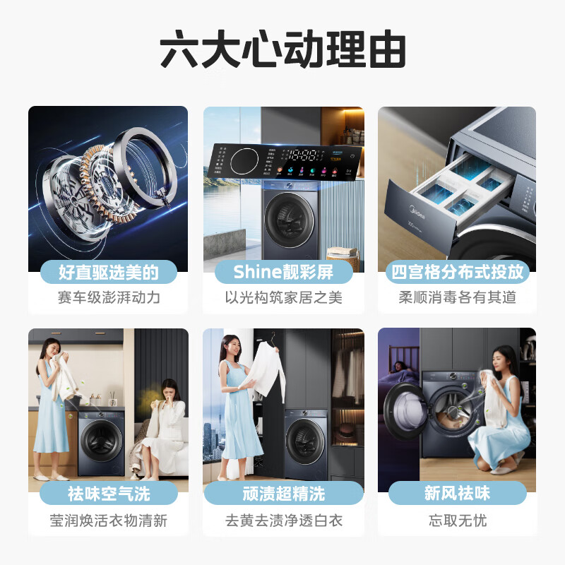 美的(Midea)滚筒洗衣机全自动 轻净直驱系列 洗烘一体机 直驱变频 顽渍超精洗 新风祛味 10公斤 MD100V656DE价格:3099.00元!