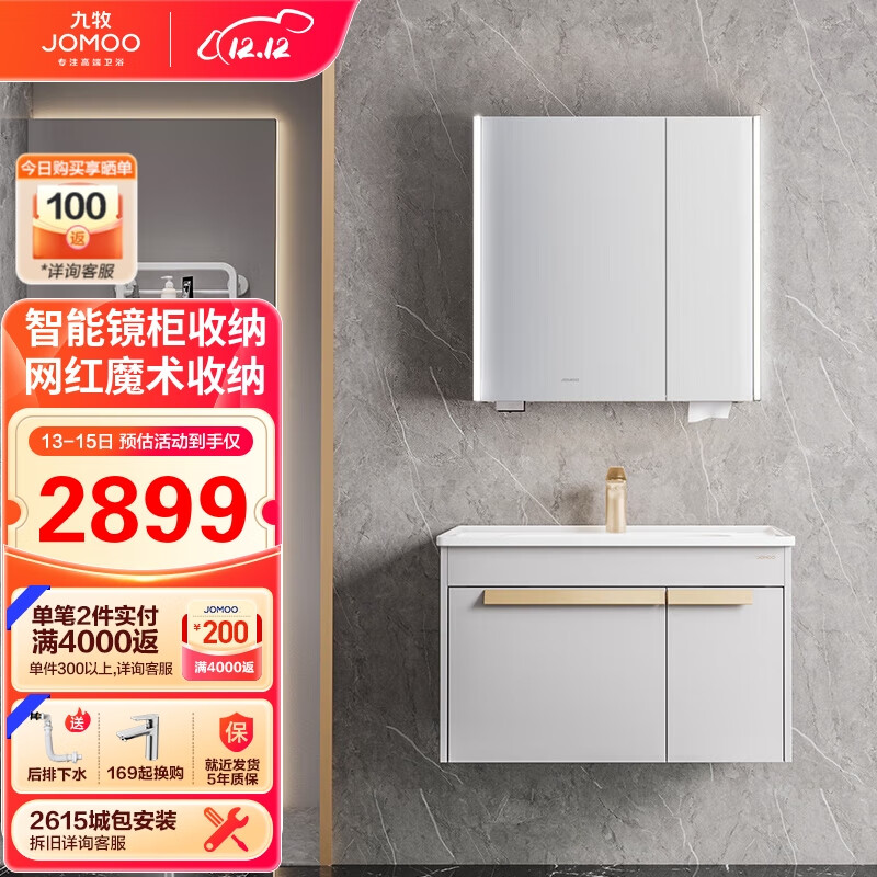 九牧(JOMOO)浴室柜 陶瓷一体盆卫生间极简轻奢悬挂式 暖灰色 A2705-117H-4价格:3449.00元!