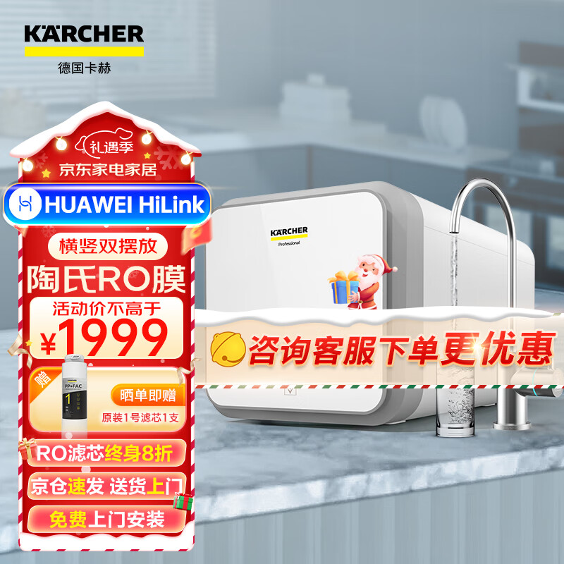 KARCHER卡赫净水器家用直饮净水机600G陶氏RO反渗透膜过滤器 1.7升/分 0阻垢剂 支持HUAWEI Hilink价格:2279.00元!