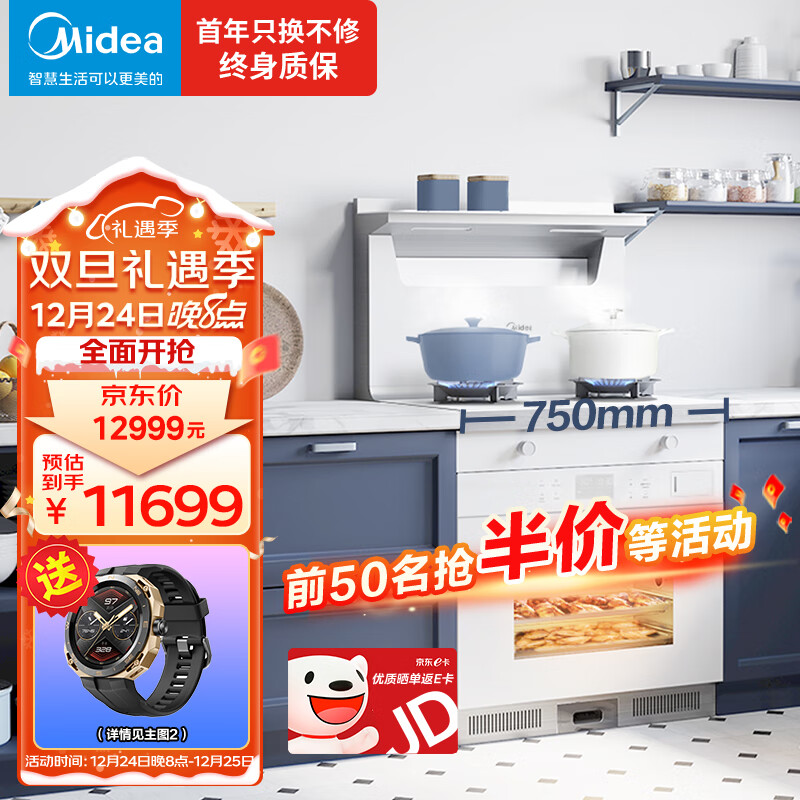 美的(Midea)蒸烤一体集成灶 油烟机燃气灶 5.2KW火力 电热自清洁 75cm白色小尺寸 TX05 天然气价格:13174.20元!