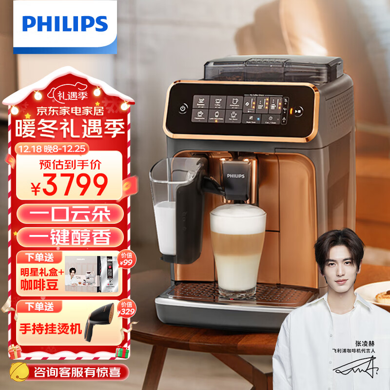 飞利浦(PHILIPS)云朵咖啡机3系EP3146/72 家用/办公室意式浓缩萃取全自动研磨一体机 奶泡现磨咖啡豆系统送礼推荐价格:3799.00元!