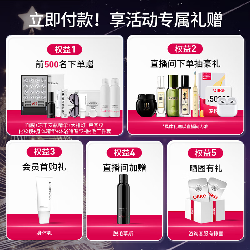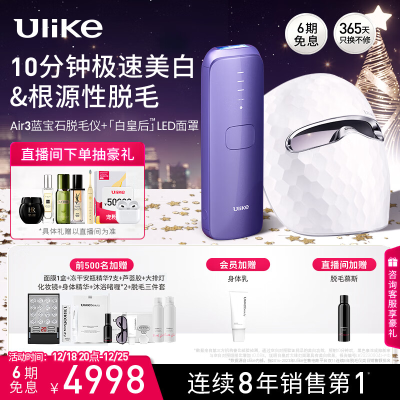 Ulike蓝宝石冰点脱毛仪激光剃毛器 白皇后大排灯美容仪 Air3水晶紫+白皇后面罩套装 送女友圣诞礼物价格:4898.00元!